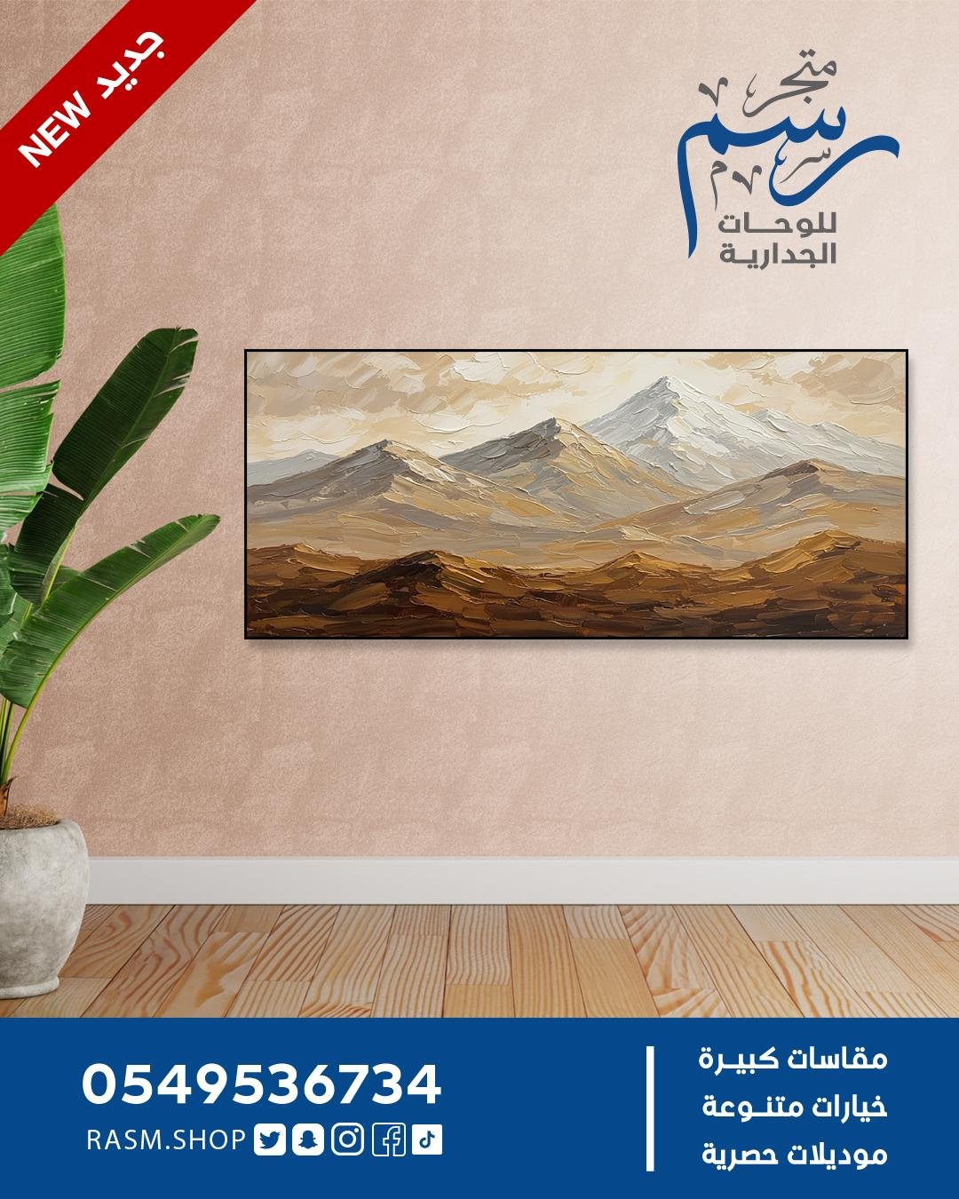 🎨 لوحة جدارية – جبال ثلجية في أفق صحراوي | فن زيتى تعبيري بألوان ترابية وأبيض ناصع