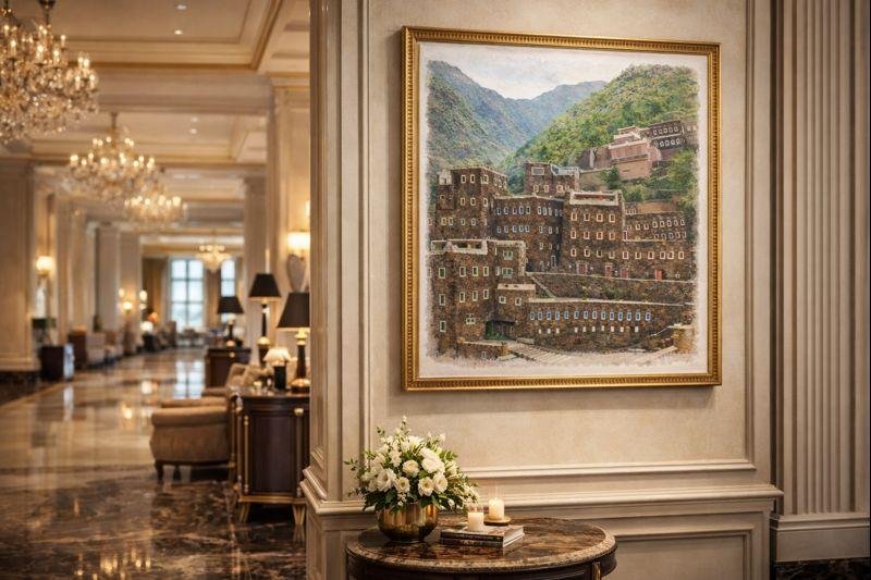 لوحة جدارية معالم عسير قرية رجال ألمع